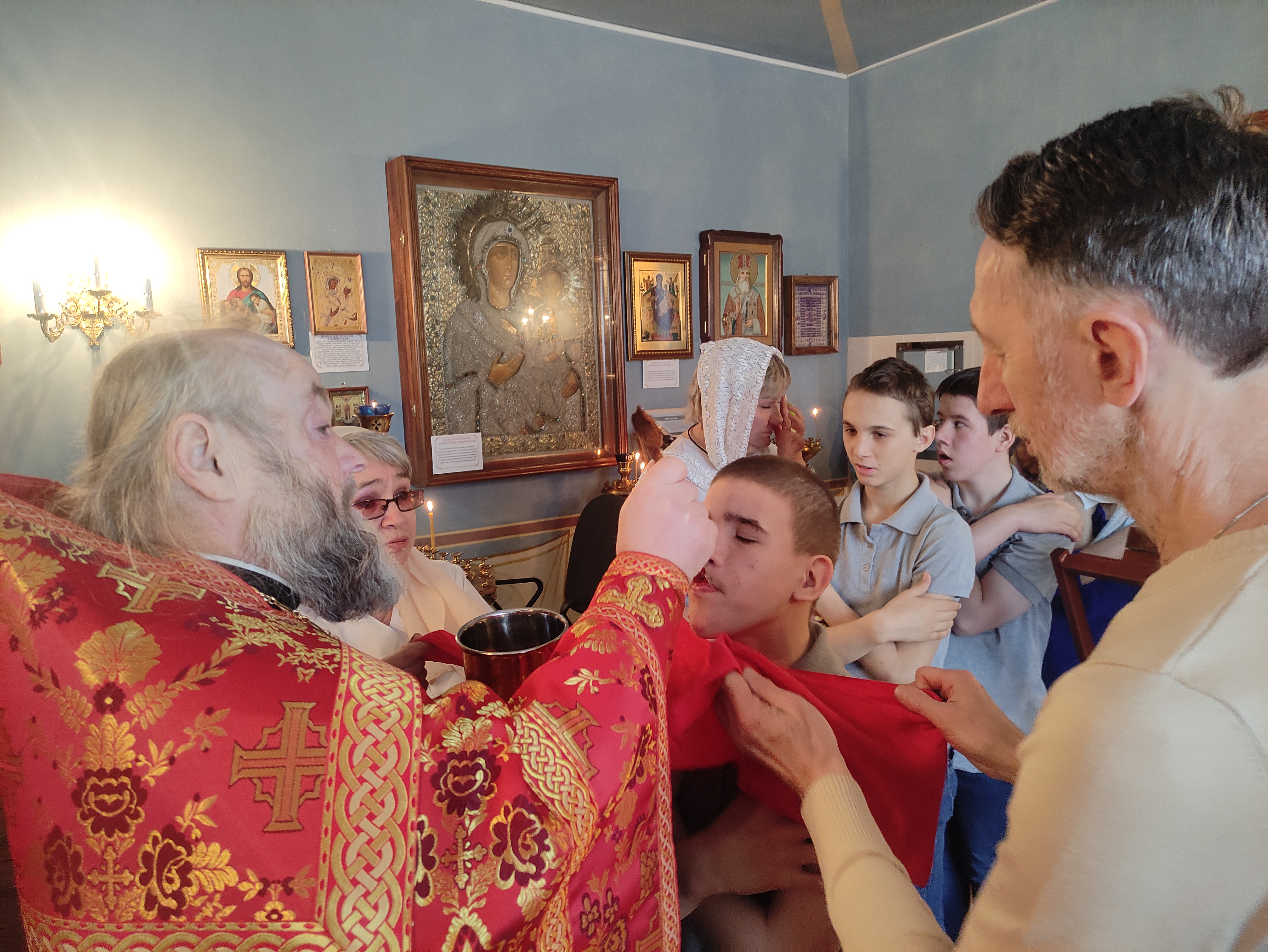 Сегодня в детском доме прошла праздничная Литургия, которую провёл настоятель нашего домового Храма протоиерей Михаил Бобонин. Многие ребята причастились.