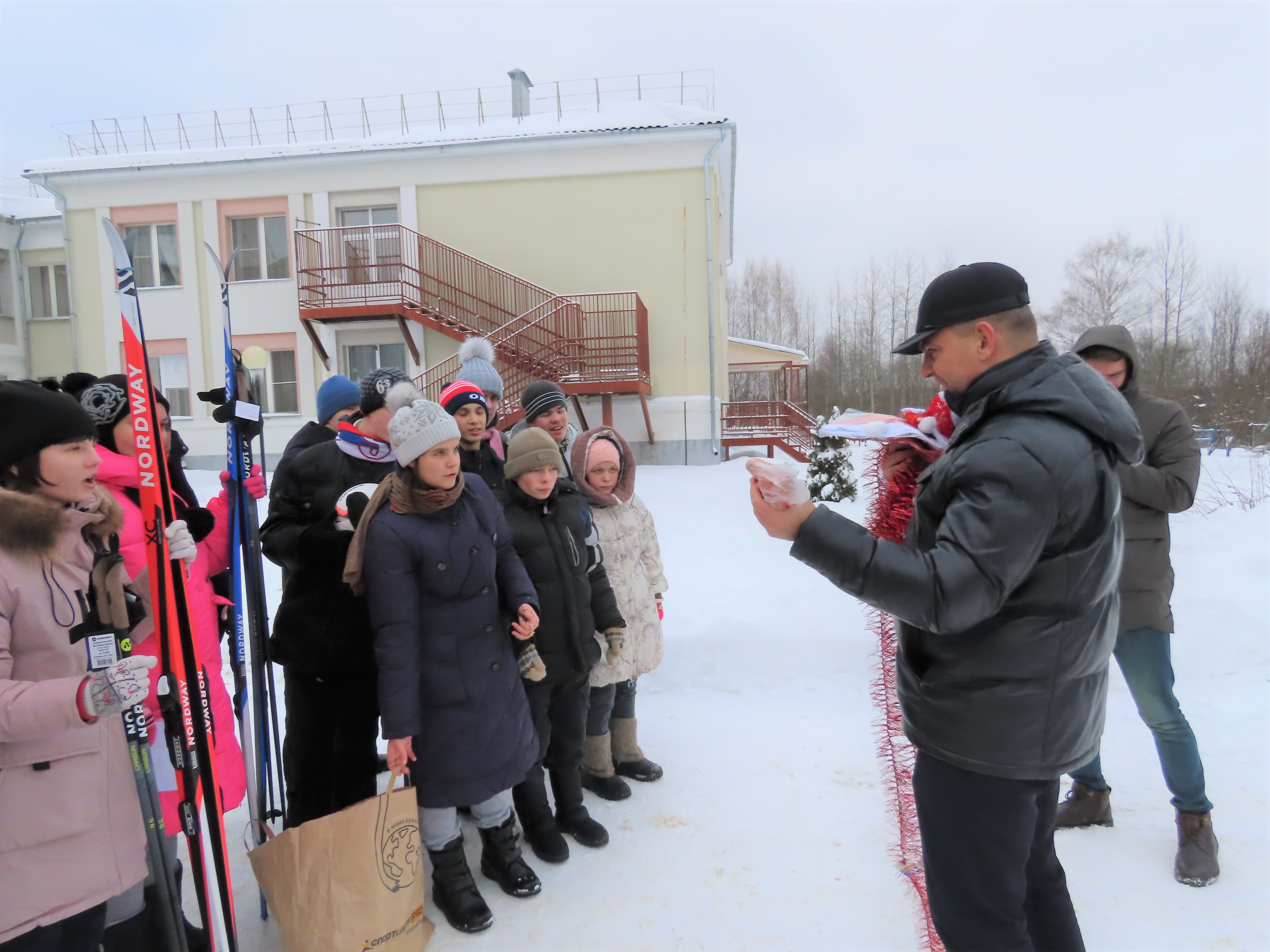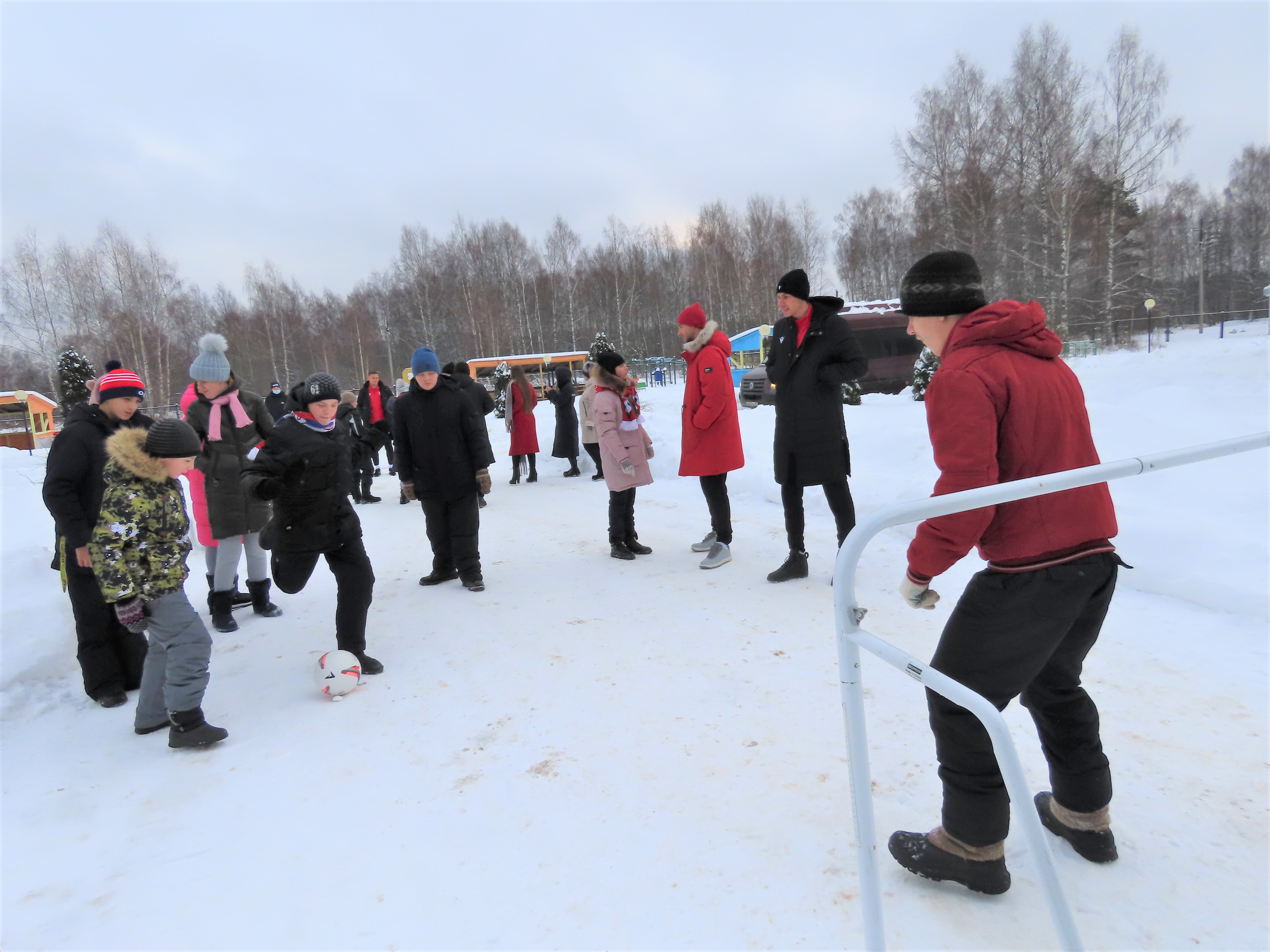 Они подарили детям лыжи и футбольные мячи, а также провели небольшой мастер-класс по игре в футбол.