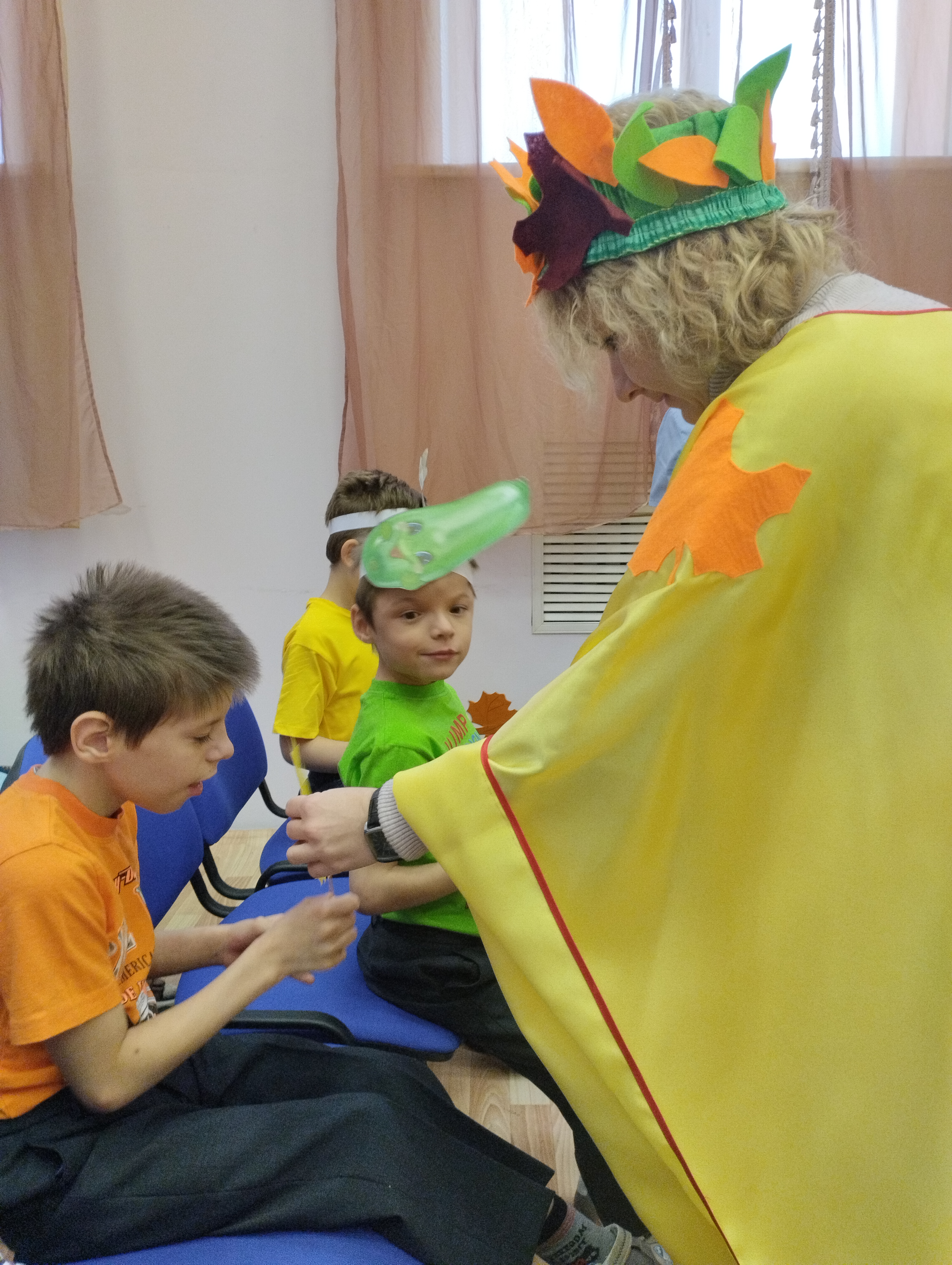 Накануне осенних каникул в нашем детском доме царила по-настоящему сказочная атмосфера! Для ребят из младших классов устроили веселый праздник — Встречу с Осенью. Дети пели для гостьи-Осени задорные песенки, танцевали и играли в забавные игры. Яркий и добрый праздник подарил всем заряд отличного настроения!